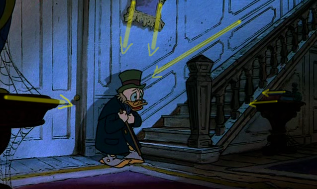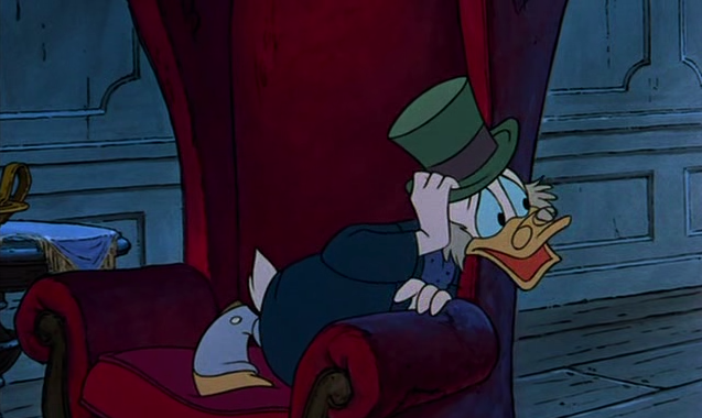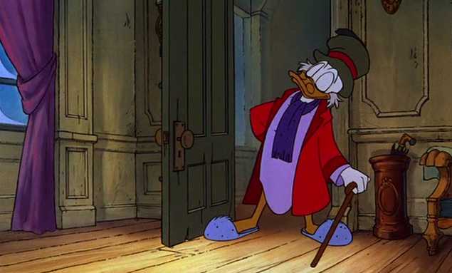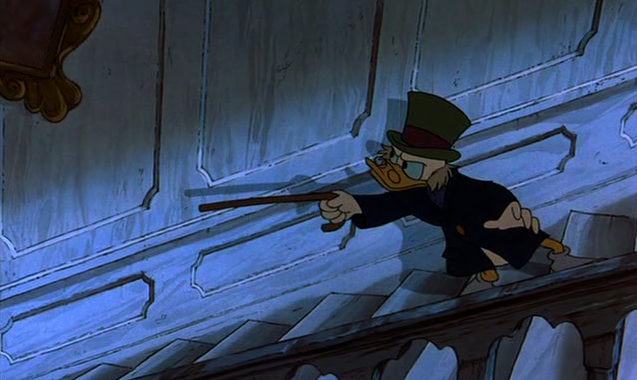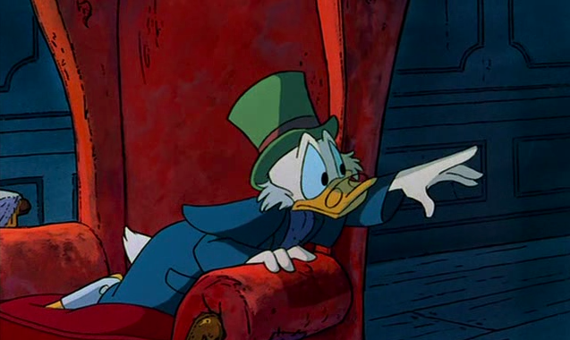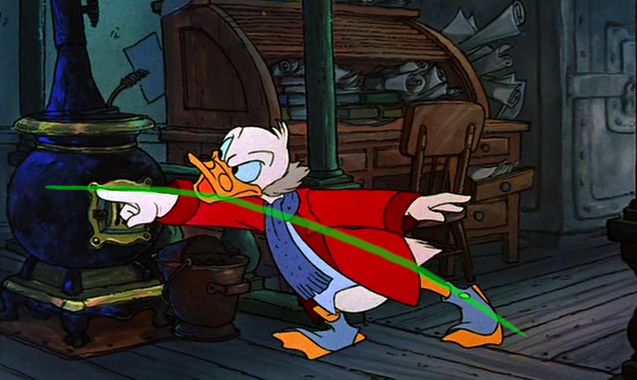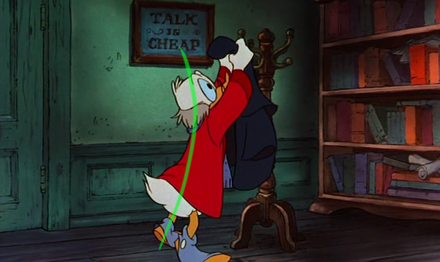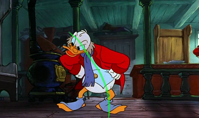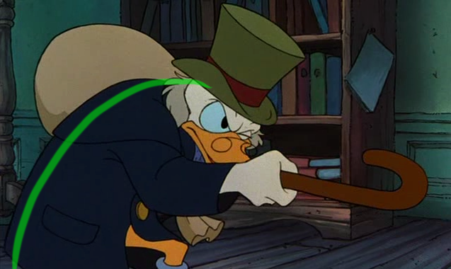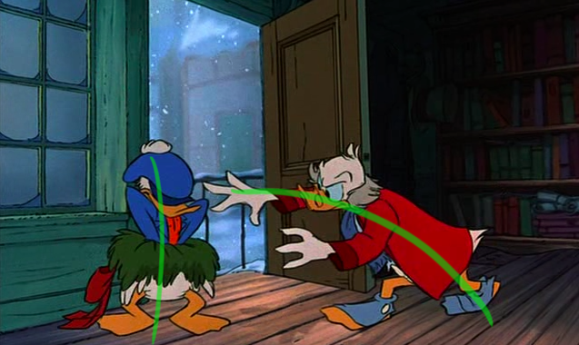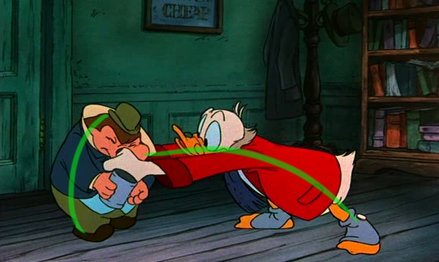 To the right here... See the line of action that runs through Scrooge's body? There's a clear and present flow to the pose.