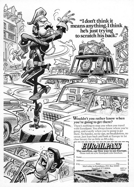 Jack Davis creates 8 rough sketches before one meets the approval from the agency art director who handled this ad campaign for Bell South Mobility. Taken from the 1996 out-of-print book The Complete Book of Humorous Art.