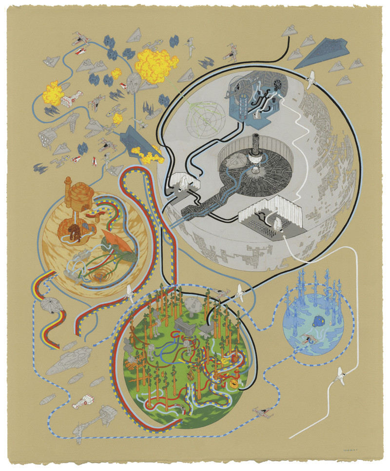 Philadelphia artist Andrew DeGraff has illustrated a series of maps that represents each film from the original ‘Star Wars’ trilogy.