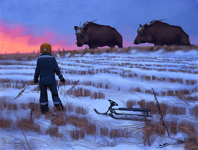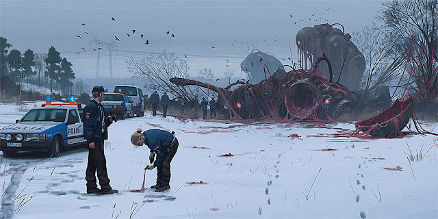 It does not take many words to describe the art of Simon Stålenhag, Swedish artist whose works speaking for themselves. Landscapes of a future perfect straight out from the covers of the sci-fi volumes, modern machines but not too rarefied spaceships, space poetry. But even dinosaurs found, nature (almost) pristine, the firm search through a great color palette of a surreal but true...