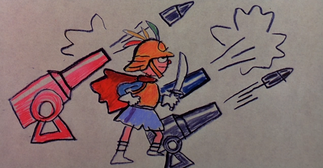 Cannon Fodder's story presents a series of events occurring over the course of a day to the members of a single family living in a dystopian city which is completely dedicated to firing enormous cannons at a distant, unseen enemy.